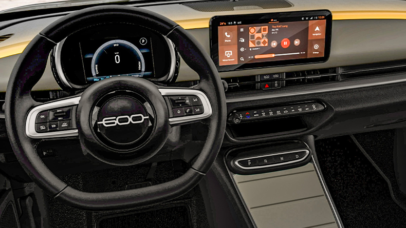 Kannaðu hinn ítalska Dolcevita lífsstíl inni í fílabeins hágæða innréttingu og grænblár smáatriði með FIAT einliti.